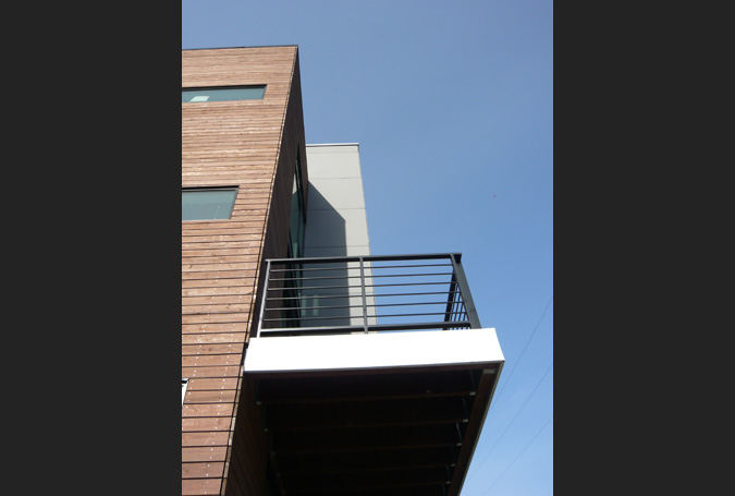 The exterior material pallet is a combination of cement board siding and stained horizontal cedar both applied as rain-screens.