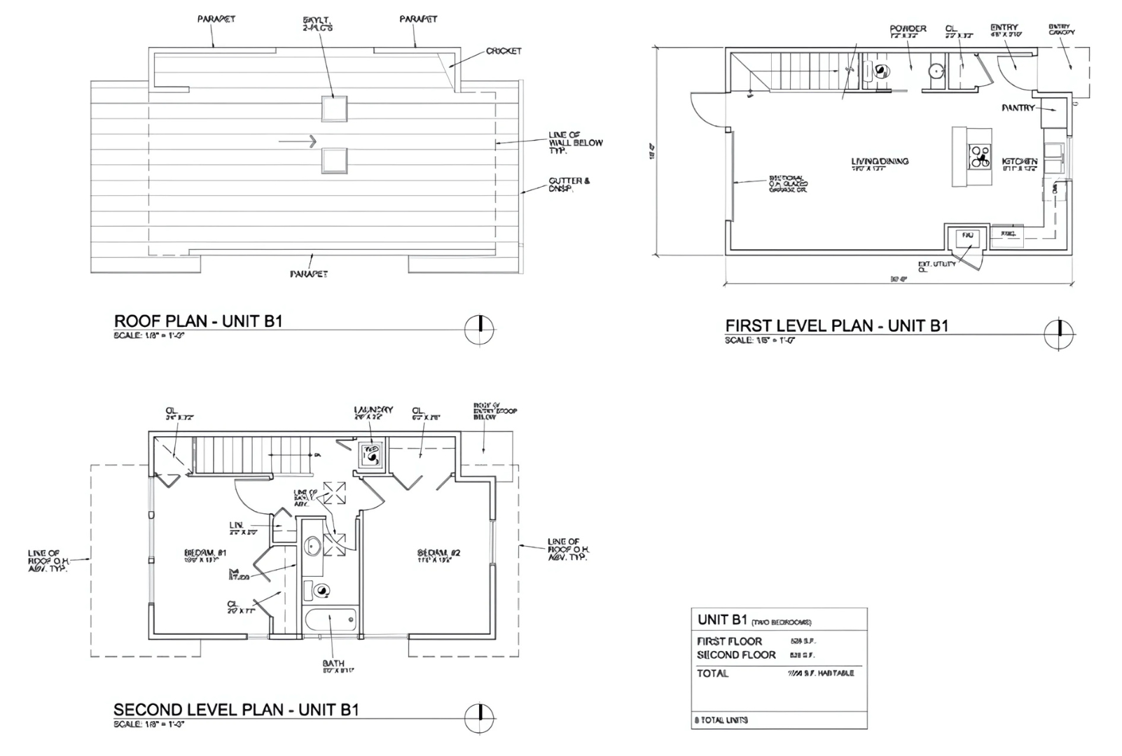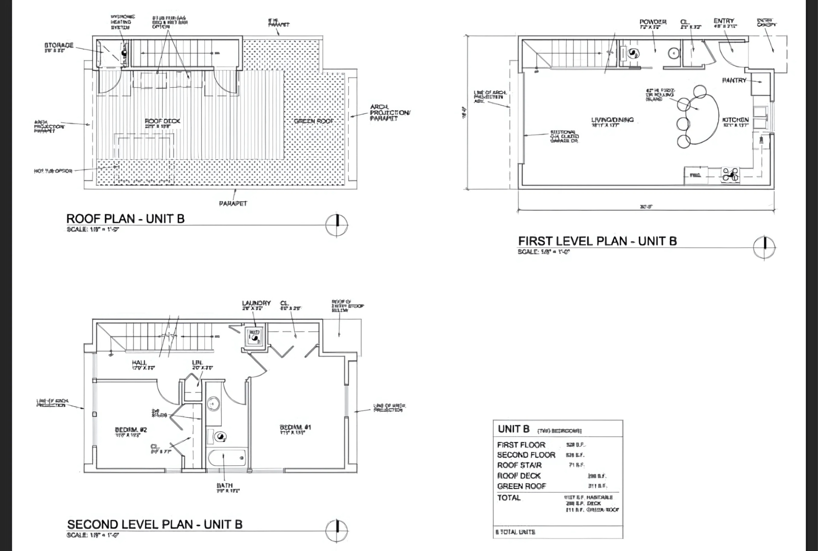 Two covered communal BBQ / Picnic structures at opposites end of the Site provide areas for Resident interaction. All Units are provided with Private Ground Floor Open Space. Some also have been designed with Rooftop Decks.